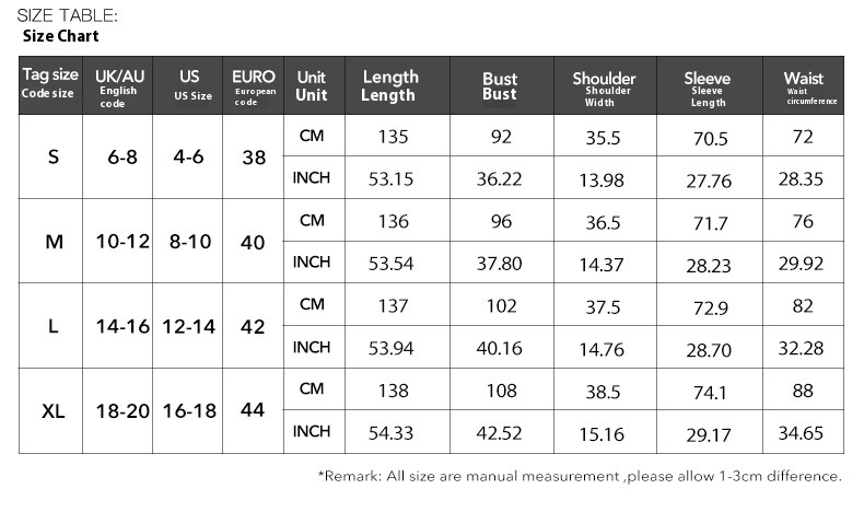 1. Asian sizes are 1 to 2 sizes smaller than European and American people. Choose the larger size if your size between two sizes. Please allow 2-3cm differences due to manual measurement. 2. Please check the size chart carefully before you buy the item, if you don't know how to choose size, please contact our customer service. 3.As you know, the different computers display colors differently, the color of the actual item may vary slightly from the following images.